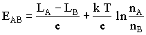 nA, nB - liczba swobodnych elektronów w metalu A i B,