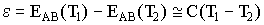 AB, wywołana różną liczbą swobodnych elektronów po obu stronach styku. Wartość kontaktowej różnicy potencjałów jest zmienna z temperaturą: (4)