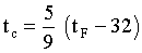 przy podziale skali na 180 równych części, tj. co 1 o F. Pomiędzy obiema skalami zachodzi zależność: